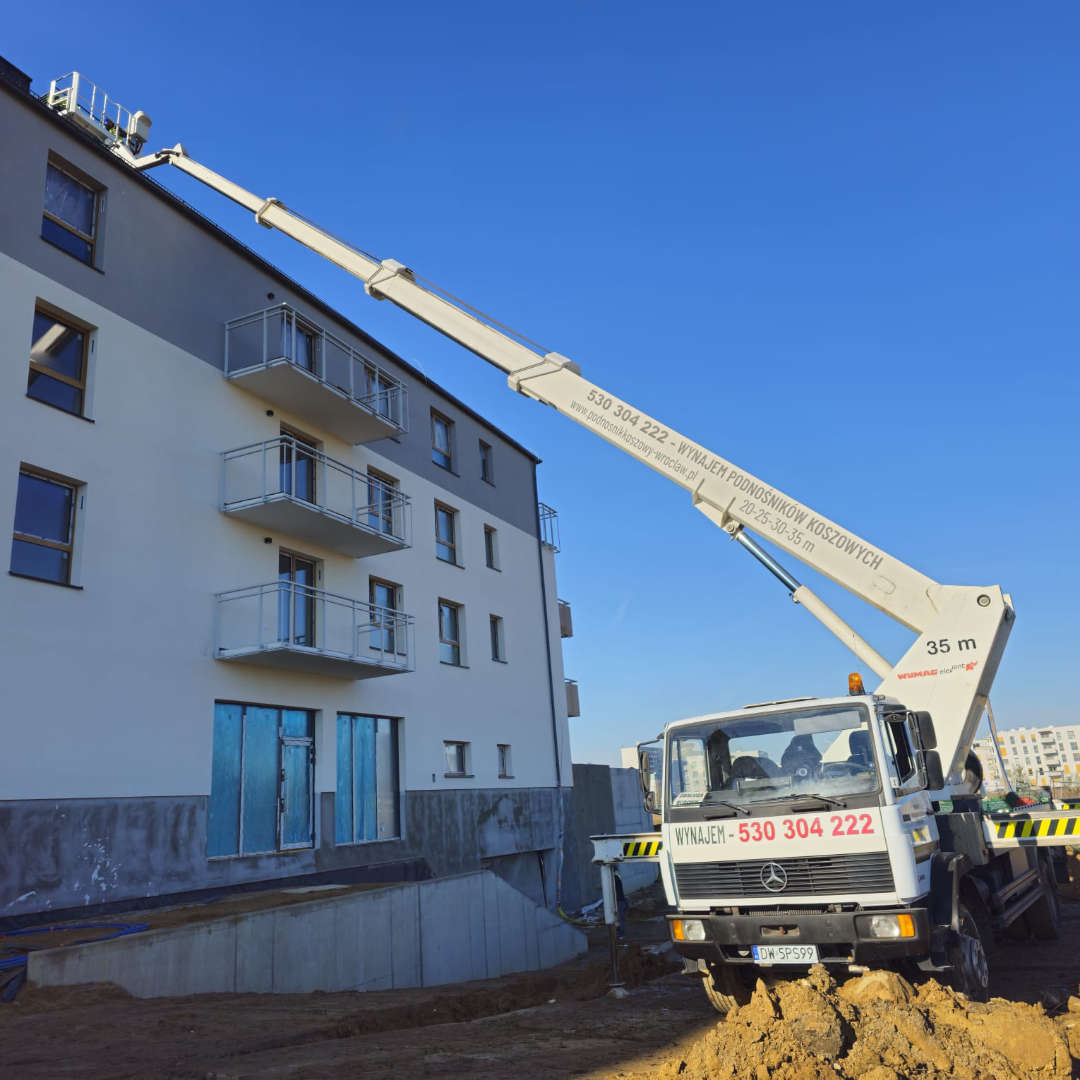 Nasza firma specjalizuje się w wynajmie podnośników koszowych. Dysponujemy parkiem maszynowym składającym się z kilkunastu podnośników o wysokości roboczej od 20 do 45 metrów oraz zasięgu bocznym do 28 metrów. Posiadamy zróżnicowany sprzęt, dopasowany do potrzeb klienta, umożliwiający dotarcie do najbardziej niedostępnych miejsc, co pozwala na redukcję kosztów i czasu. Oferujemy podnośniki koszowe na małych pojazdach do 3,5 t oraz na ciężarówkach powyżej 7 t. Wychodząc naprzeciw oczekiwaniom rynku, nieustannie rozbudowujemy nasz park maszynowy, aby sprostać zapotrzebowaniu na wynajem podnośników koszowych.