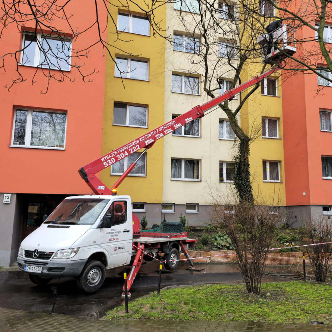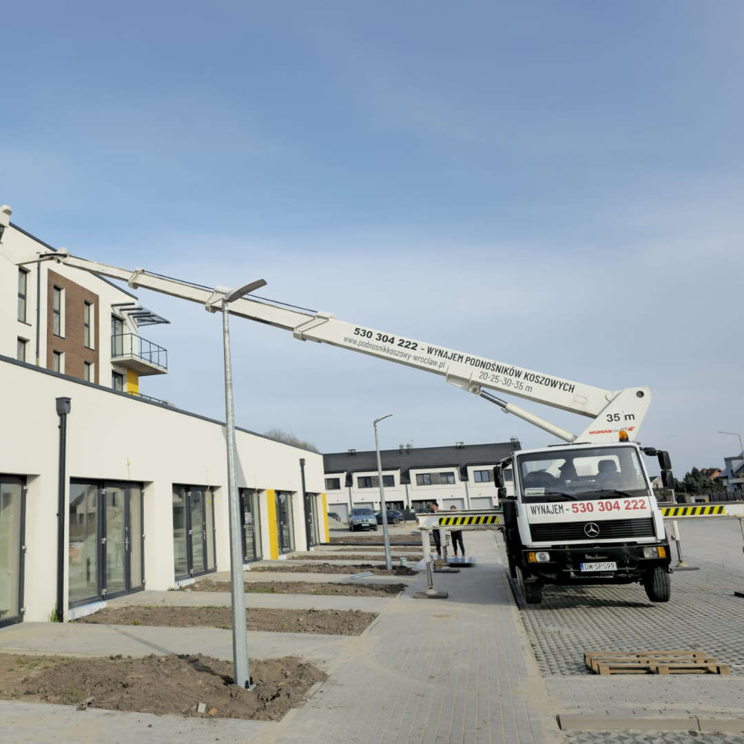 Nasza firma specjalizuje się w wynajmie podnośników koszowych. Dysponujemy parkiem maszynowym składającym się z kilkunastu podnośników o wysokości roboczej od 20 do 45 metrów oraz zasięgu bocznym do 28 metrów. Posiadamy zróżnicowany sprzęt, dopasowany do potrzeb klienta, umożliwiający dotarcie do najbardziej niedostępnych miejsc, co pozwala na redukcję kosztów i czasu. Oferujemy podnośniki koszowe na małych pojazdach do 3,5 t oraz na ciężarówkach powyżej 7 t. Wychodząc naprzeciw oczekiwaniom rynku, nieustannie rozbudowujemy nasz park maszynowy, aby sprostać zapotrzebowaniu na wynajem podnośników koszowych.